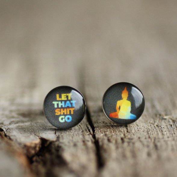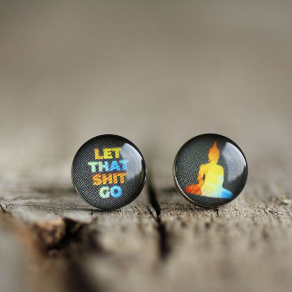 Buddha sebészeti acél fülbevalók. Let that shit go / Engedd el. Antracit változat.