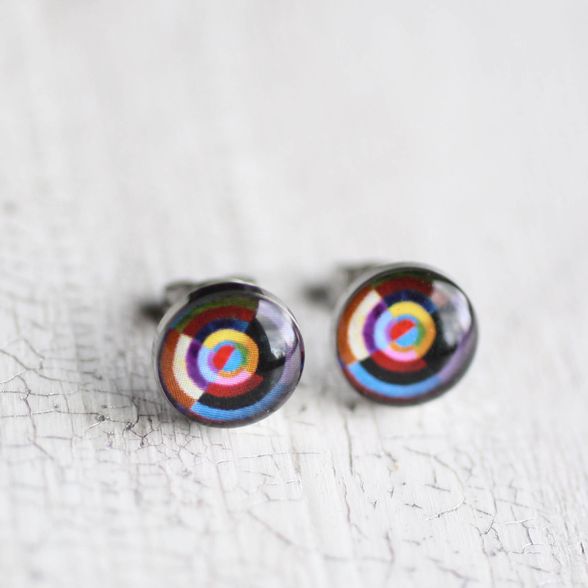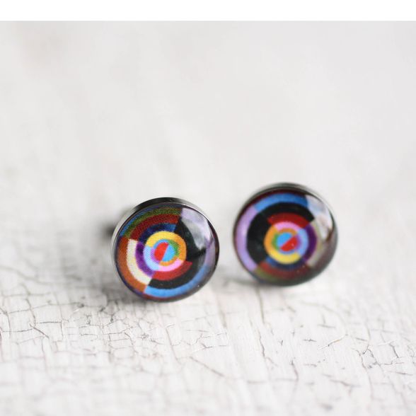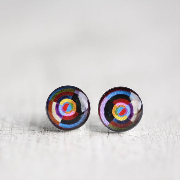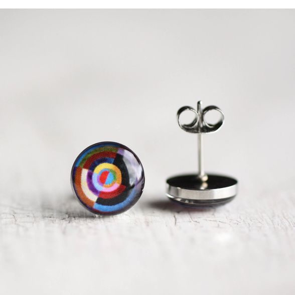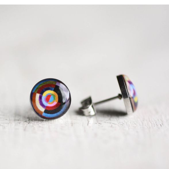 Vidám, lila sebészeti acél fülbevalók, Robert Delaunay francia festő festményével díszítve. Könnyű, kényelmes, antiallergén darabok.