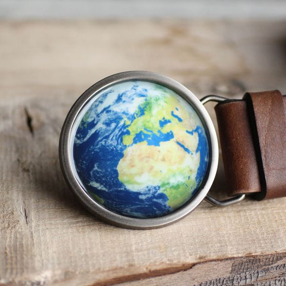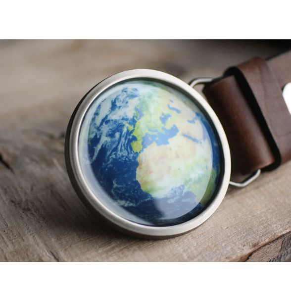 Európát és Afrikát ábrázoló kerek földgömb övcsat.
