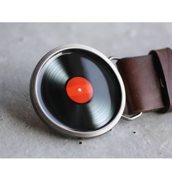 Retro hanglemez grafika kerek övcsaton. Piros változat.