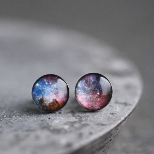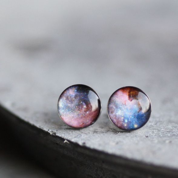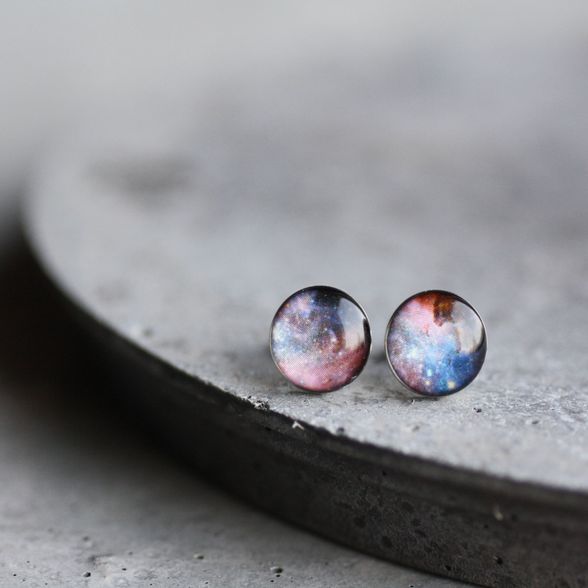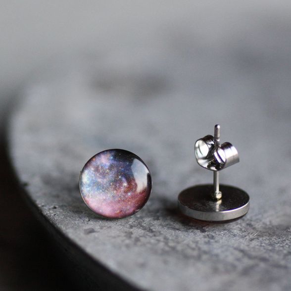 Lila világűr orvosi acél pötty fülbevalók