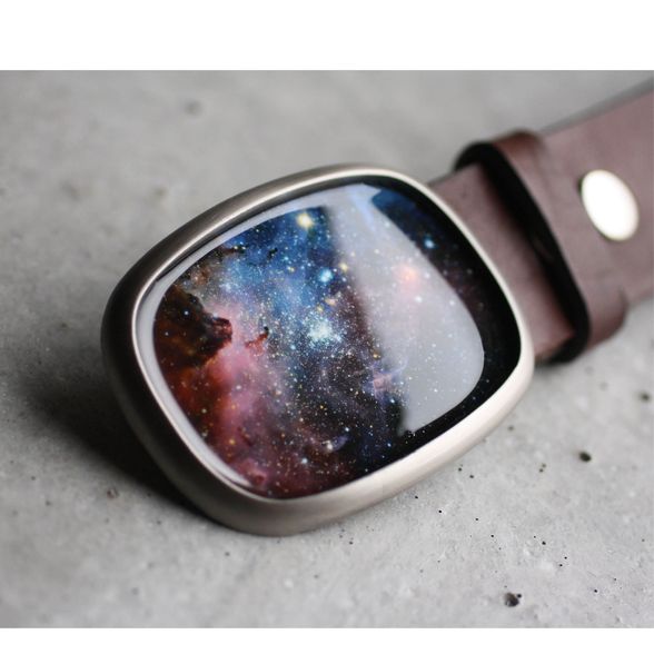 Gyönyörű liláskékes nebula / világűr / galaxis / csillagköd fotó ovális övcsaton.