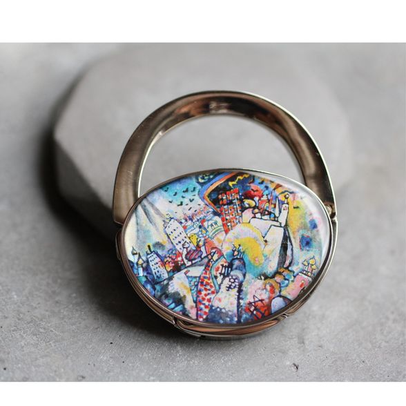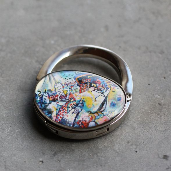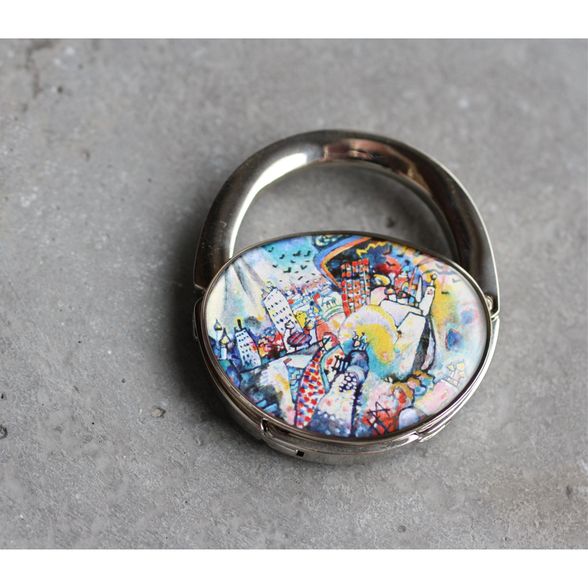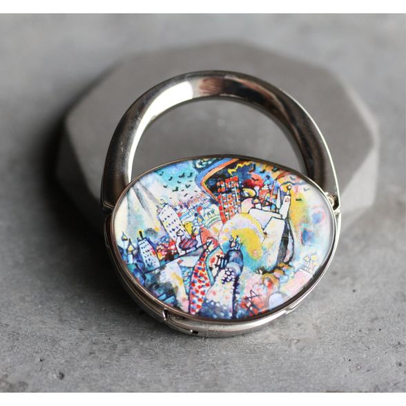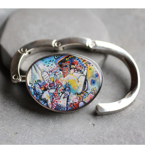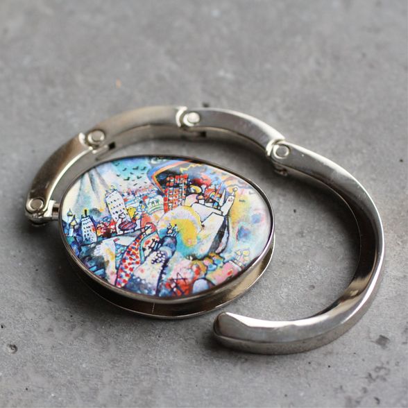 Táska formájú asztali táskaakasztó (táskadísz / táskafogas / táskatartó kampó), Wassily Kandinsky: Moszkva, Vörös tér című különleges festményével díszítve.