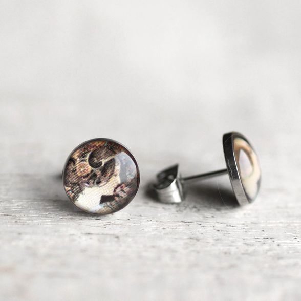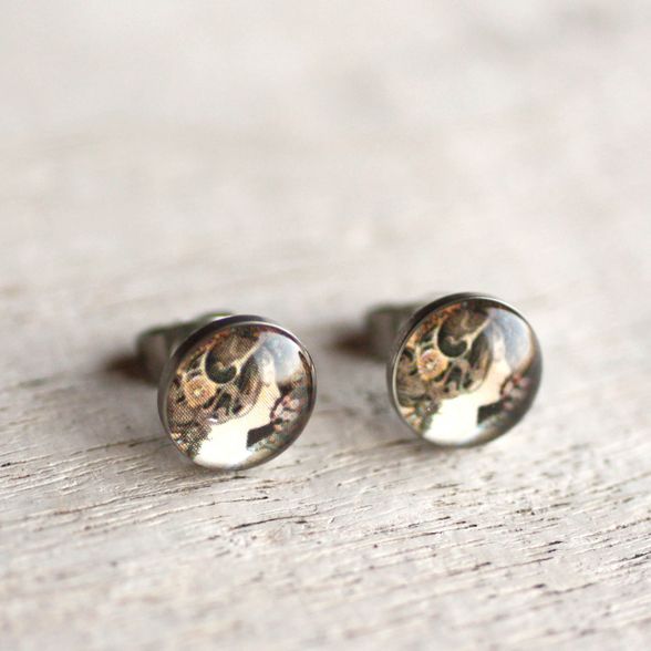 Alfons Mucha: Kankalin c. festményévével díszített sebészeti acél fülbevaló. Könnyű, kényelmes, antiallergén darabok.