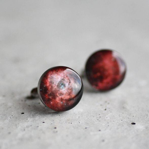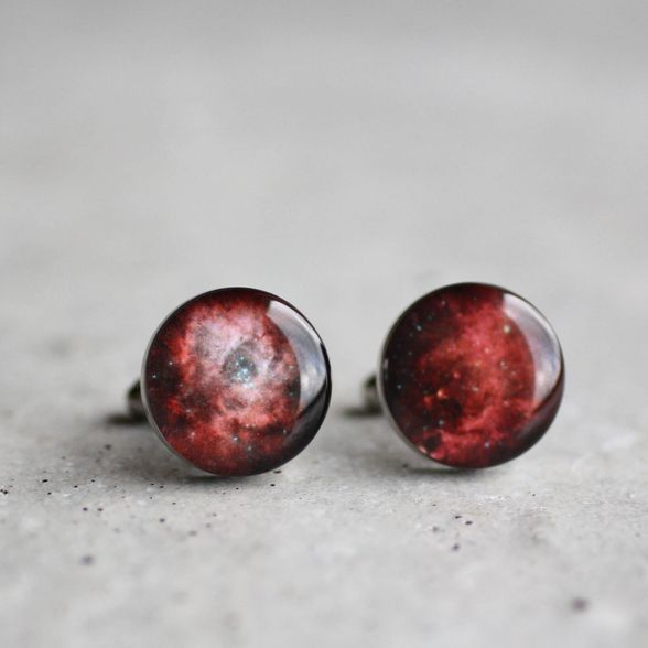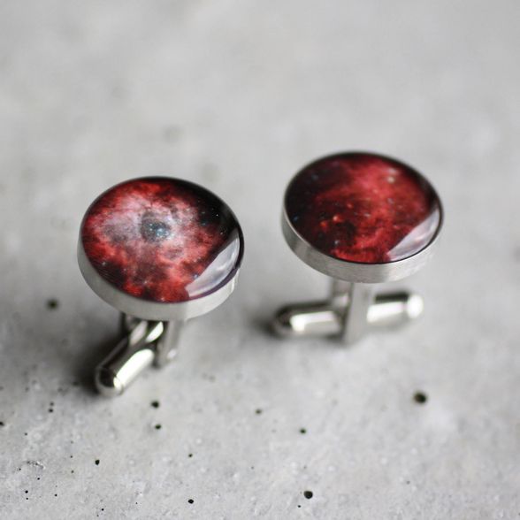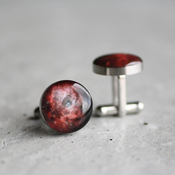 Gyönyörű piros színű világűr / univerzum / csillagköd / nebula orvosi acél mandzsettagombok.