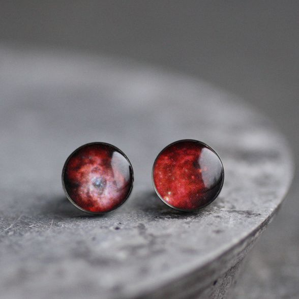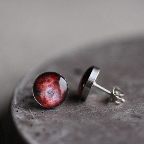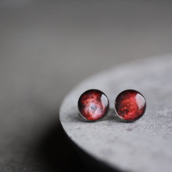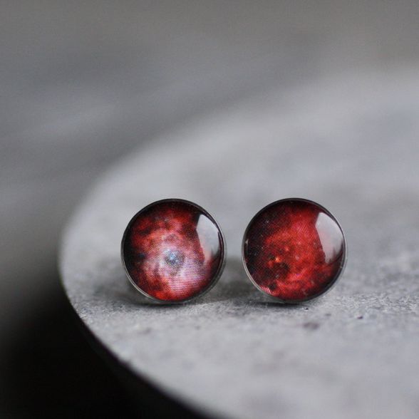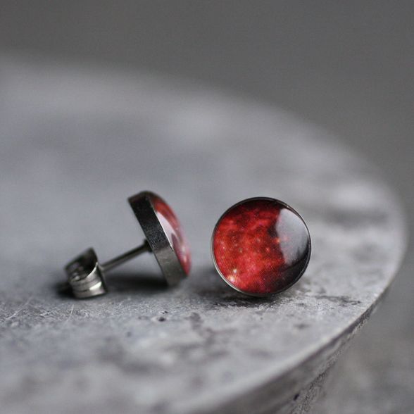 Piros világűr / csillagköd / univerzum / nebula sebészeti acél pötty fülbevalók.
